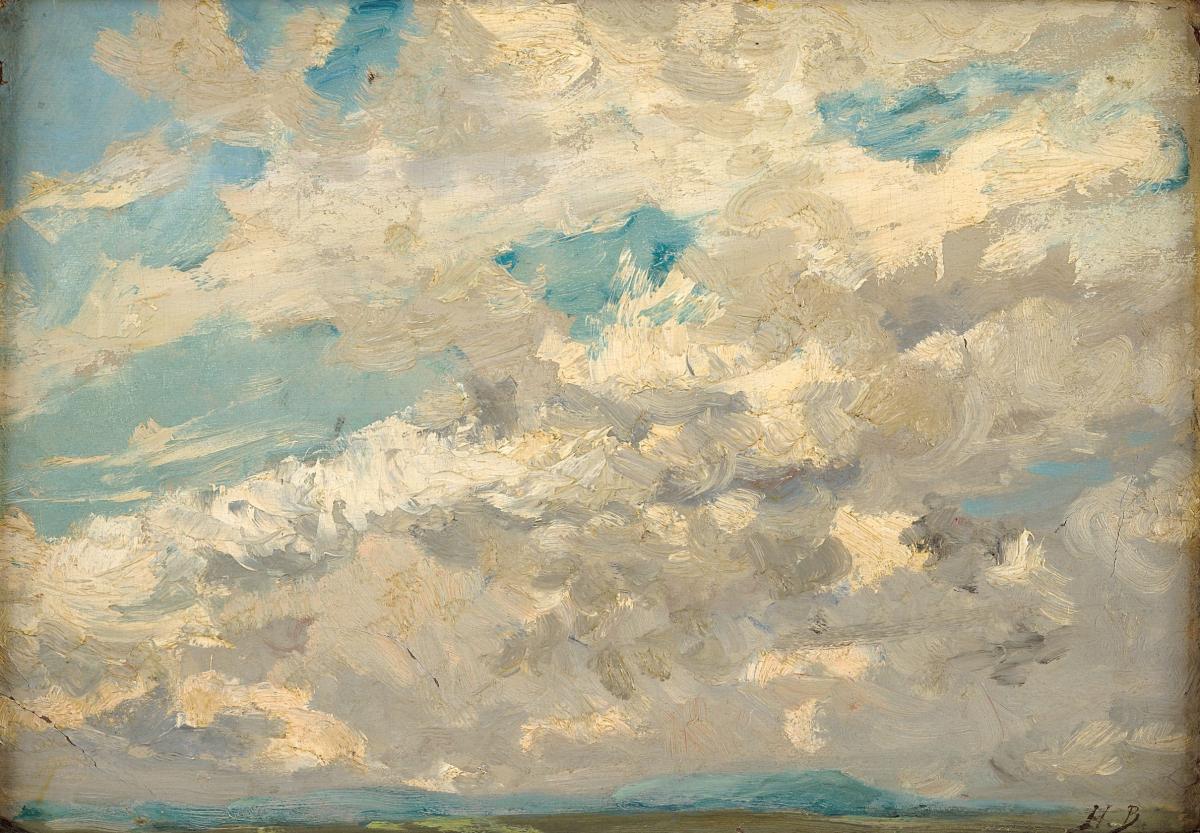 En captant sur un petit panneau en bois cet instantané très sensoriel des nuages qu’il voit passer, Hippolyte Boulenger défait la peinture de paysage de toute dimension topographique et pittoresque. L’observation du ciel, des variations atmosphériques et des vibrations lumineuses devient le point de départ pour se livrer à un exercice pictural exalté, s’affirmant dans les empâtements et les coups de brosse apparents, vecteurs d’une expression personnelle pleinement revendiquée. Comme le note l’Art moderne en 1881, « Partout on sent la main, on sent la patte, active, habile, nerveuse, posant le coup de brosse, enlevant la touche, accrochant aux bons endroits la lumière ou l'accent (…) Le printemps, le matin, la lumière, les rameaux élancés, les vergers en fleurs, les prés d'un vert humide, les ciels délicats, égayés d'un arc-en-ciel quand il les assombrissait d'un orage, les blancheurs d'un hiver neigeux, voilà ce que sa palette savait faire chanter ». Actif pendant une bonne dizaine d’années avant de mourir prématurément, Hippolyte Boulenger est entré dans l’histoire de l’art belge comme le « principal préfigurateur du paysage impressionniste en Belgique » (Serge Goyens de Heusch). Il était aussi la figure de proue de L’Ecole de Tervueren, qu’il lance en 1866, pour désigner les artistes – lui y compris – , qui s’installent à Tervueren, pour y peindre en plein air dans la Forêt de Soignes. Le terme choisi est un clin d’œil aux précurseurs français de « l’Ecole de Barbizon », plantant, eux, leur chevalet en lisière de la Forêt de Fontainebleau.
