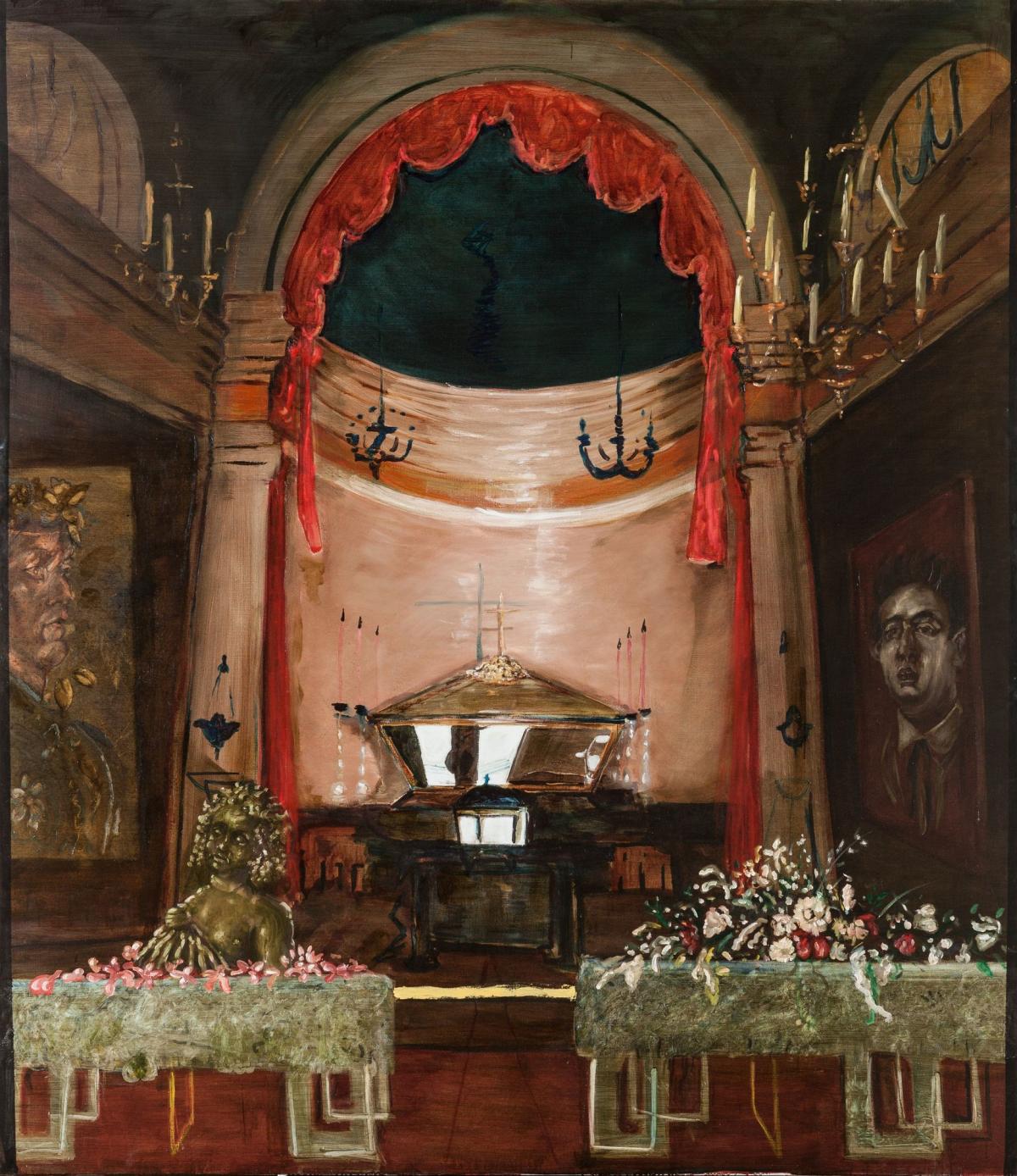 Les tableaux de Jan Van Imschoot sont complexes, truffés de références à l’histoire de l’art. L’artiste s’intéresse tant aux Primitifs flamands et aux Hollandais du XVIIe qu’à Goya, Le Tintoret, Luc Tuymans ou Raoul De Keyser. Il qualifie lui-même sa touche d’« anachro-baroque ». Zita’s late house, grande huile sur toile de 2006, évoque la figure de Sainte Zita, patronne italienne des domestiques. Le peintre avait déjà représenté la dépouille de la sainte en 1995, puis repris ce thème en 2002 à travers une dizaine de toiles dans la série Recrystallisation of a mental maidenhood. On raconte qu’au fil des siècles, le cercueil de Zita fut ouvert à plusieurs reprises et que son corps momifié fut toujours retrouvé en parfait état de conservation. Il est aujourd’hui exposé dans sa châsse-reliquaire dans la basilique San Frediano de Lucques (Toscane). Si l’artiste se concentrait auparavant sur le motif de la dépouille, dans Zita’s late house, il semble télescoper le sujet dans un décor plus général, à la limite du tragi-comique. Paysages anthropomorphes, composition florale et figure fantomatique, ici celle de Johnny Cash sur la droite se dissimulent dans l’ensemble.